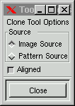 The Clone tool gives you the possibility to paint with patterns or part of an image instead of just a solid color. To paint with a pattern fram the Pattern Selection dialog (see chapter X) you just click at the pattern you want and start painting.
