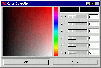 Clicking in the foreground or background icons brings up the Color Selection dialog, where you can easily change to another color.You can do it manually, by clicking at the hue you want in the spectrum box, and then specifying further by dragging the cross in the large color box to the exact color you want. If you want a specific RGB or HSV-color, you can type the exact value in the HSV or RGB parameter squares. There are also other ways to find the color you want. You can try under (S) for saturation, (if you're after pastel or neon colors for instance) or under (V) for value (washed out or gloomy colors). You can also search in the Red, Green or Blue spectrum for the shade you want.