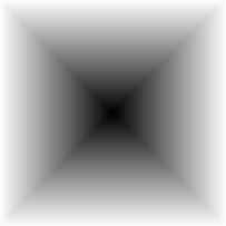 The square gradient produces a square blend, imitating the visual perspective in a corridor.