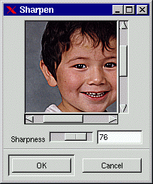 This filter will sharpen your image. You can set the amount of sharpness, and you can get a preview. This is a truly amazing tool, and even if it's simple, it is one of the more useful tools in Gimp when it comes to enhancing bad photos.