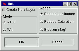 This filter will identify pixels which can be hard or troublesome to show on a NTSC or PAL monitor. You can do this on the original image, or as a new layer on top of your image if you just check the "Create New Layer" check box. You can reduce the pixels Luminance or Saturation or simply make them black. It's generally good to use this filter when you publish your images on the web, but there is one drawback; you can never know the monitor of the surfing person.