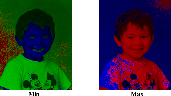 This plug-in detects the RGB channel with the highest or lowest value and changes every pixel to either Red, Green or Blue - with maximum value!. If you have checked "Hold the maximal channels" you choose to select by maximal value. If there was Cyan, Magenta or Yellow in your image, those colors will remain even after the filter has been applied, because those colors already have maximal values for two RGB colors (the filter doesn't know which of those to choose). If you check "Hold the minimal channels" you choose to select by minimum value. With this button checked, Cyan will not show, because the filter will choose the lowest value, which is 0 for Red. Black and White will remain in both cases, because they have no value which is lower or higher than another.