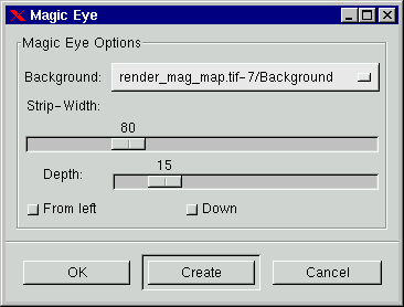 Magic Eye is a way to create 3D stereo images in Gimp. I think everybody have seen 3D images in magazines, a strange image that you have to look at in a certain way, and up pops a flower or something. Now you can do the same thing in Gimp. Here is how it works:
