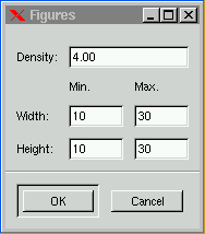 Figures creates random number of rectangles of different size and color in your image. You can constrain the rectangle size to Min/Max Width and Height. Density controls the amount of rectangles in your image. A low density value results in a low amount of rectangles, and a high value produces a whole lot of rectangels. This plugin can with success be used as a texture maker.