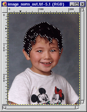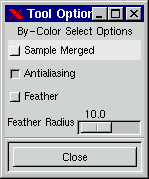 While you are doing this, you can see a grayscale representation of your current selection in the By Color Selection dialog. This preview works just like an Alpha Channel. White parts represent sharp selections (opaque), gray parts are for more or less feathered selections (semi-transparant), and black areas represent unselected areas (wholly transparant).
