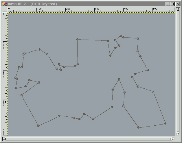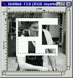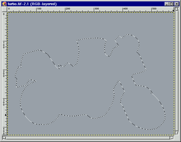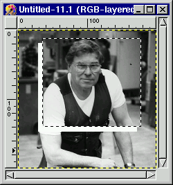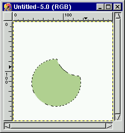 When you have made a selection, the boundary of the selection appears with a blinking dotted outline, sometimes referred to as "marching ants". Your selection is now the only active part of your image; the rest is masked and is not affected by your operations. (If you find the blinking line distracting, the GIMP allows you to swich it on and off with "toggle" in the Edit/Select menu.