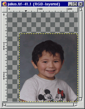 The fact that the Move tool moves selections should be obvious, but the Move tool works in different ways. You can move floating selections, you can move the entire image or layer, and you can move the selection shape. We have already discussed the fact that GIMP offers a "fake" move tool symbol, which transforms your selection to a float. This means that you have to remember to change to the move tool as soon as this happens. You can also ignore the "fake move tool" and turn straight to the "Float" command in the Select Menu. This procedure assures you of the float's position, and IF you decide to move it, you use the move tool in the normal way.