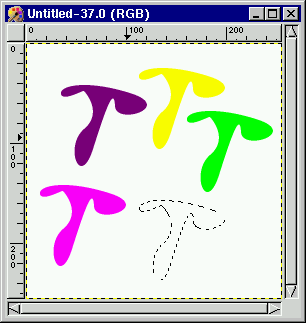 One more thing about moving - when you make multiple selects, the GIMP treats them as a unit. That means that you can't move one selection closer to another, because the whole lot will move together as one.