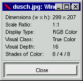 There is another extremely useful item in this menu; the "New Wiew". With New Wiew, you open a new window showing your image. This enables you to watch your creation from several windows, each with different focus and zoom. It is still the same picture, and the changes you make appear in all of the windows. If you want to try out different versions of your image, press Ctrl+D, for Duplicate. The duplicate windows are separate, changeable copies of your original image.