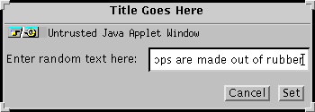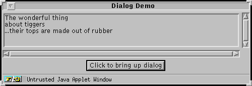 次に AppletButton の助けを借り、アプレットとして動作しているバージョン 1.0 の DialogWindow( ソースコードへのリンクがあります) を示します: