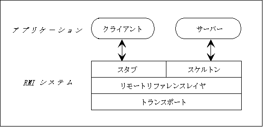 リモートサーバオブジェクト上のメソッドを呼び出すクライアントは実際にはリモートオブジェクトのスタブまたはプロキシをリモートオブジェクトへの通路として利用します。クライアント側が持っているリモートオブジェクトへの参照はローカルスタブへの参照です。 このスタブはリモートオブジェクトのリモートインタフェースの実装であり、リモート参照層を経由して、サーバオブジェクトへ呼び出し要求を転送します。 スタブは rmic コンパイラにより生成されます。