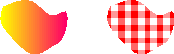グラデーションやテクスチャーのようなさらに複雑なスタイルで Shapes を塗りつぶすには、Java 2D の Paint インタフェースの GradientPaint クラスと TexturePaint クラスを使います。単純な一色塗りで複雑な塗りつぶしを行おうとすると時間のかかる作業になりますが、これらのクラスを使うと手間のかかる作業は必要なくなります。図 2-5 に示す 2 種類の塗りつぶしは、GradientPaint と TexturePaint で簡単に定義できます。