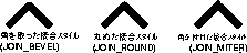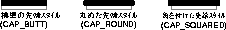 たとえば、図 2-3 の最初のイメージは角を付けた接合スタイルを使っており、2 番目のイメージは丸めた接合スタイル、丸めた先端スタイル、および破線パターンを使っています。
